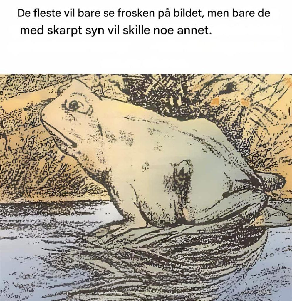 Dette er bildet som skaper oppstyr på sosiale medier: en tilsynelatende vanlig tegning av en frosk som skjuler en overraskelse for de som tar seg tid til å se nøye etter. En visuell gåte som vil teste hjernen din ... For under sitt harmløse utseende skjuler denne lille amfibien en uventet form. Så, er du klar til å ta utfordringen uten å jukse?