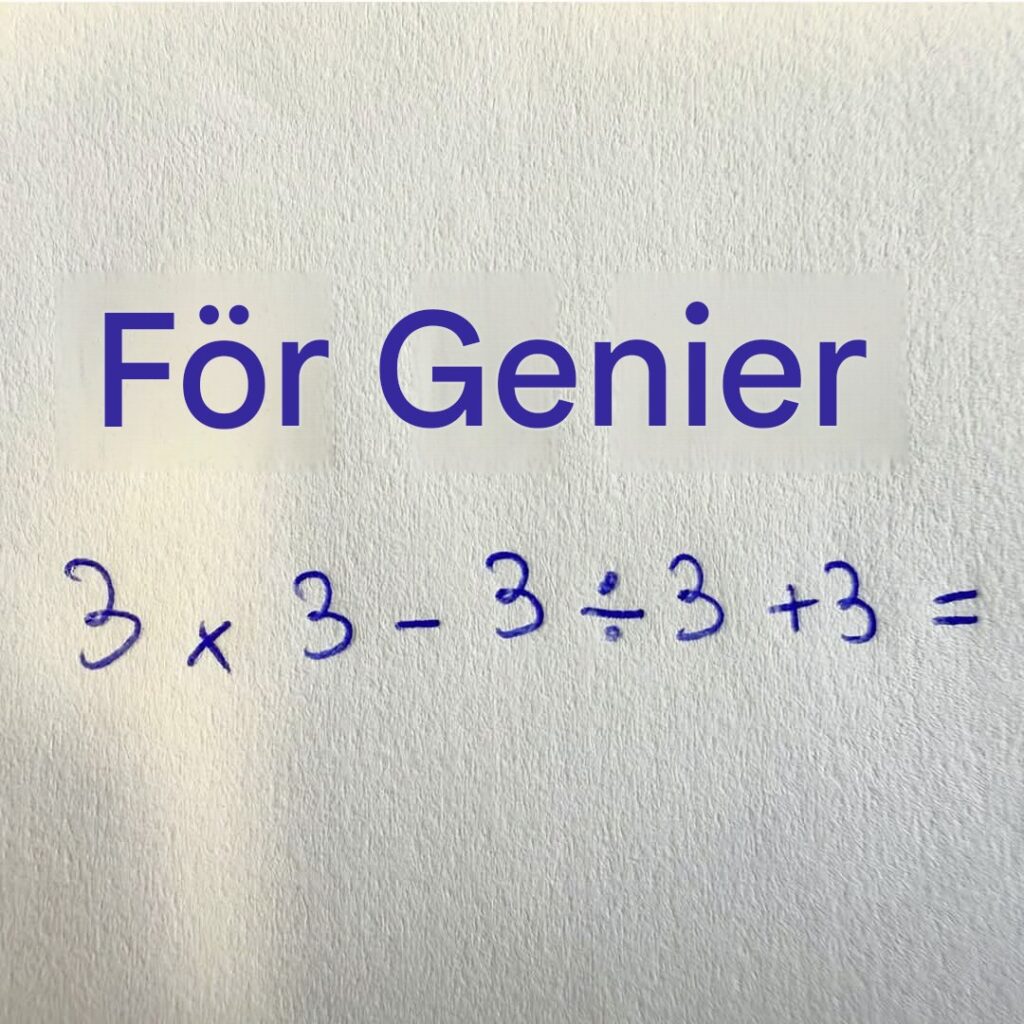 Lös steg för steg: 3 × 3 + 3 ÷ 3 – 3