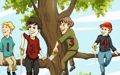 Tänk dig detta: fyra barn sitter bekvämt placerade i grenarna på ett stort träd. Solen skiner och atmosfären verkar bekymmerslös……