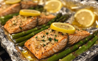 Grillad lax med citron, vitlök och sparris i folie 🕒 Tillagningstid: 10 minuter 🔥 Tillagningstid: 15-20 minuter 🍽️ Portioner: 4…