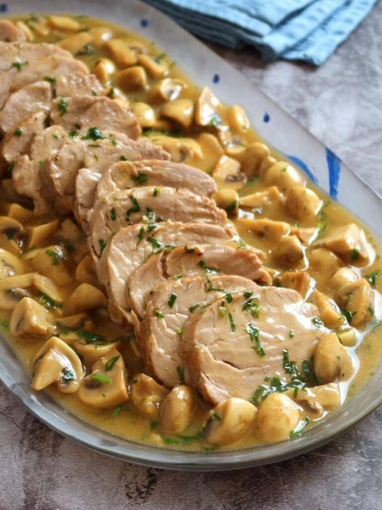 Allt börjar med en vacker bit kött – kalvkött eller fläsk – som långsamt rostas för att behålla sin mörhet. Färska champinjoner, lätt brynta, ger en träig touch som passar underbart ihop med såsen. Denna sås, gjord på matlagningssaft, lite grädde och färska örter, omsluter allt i en oemotståndlig arom.
