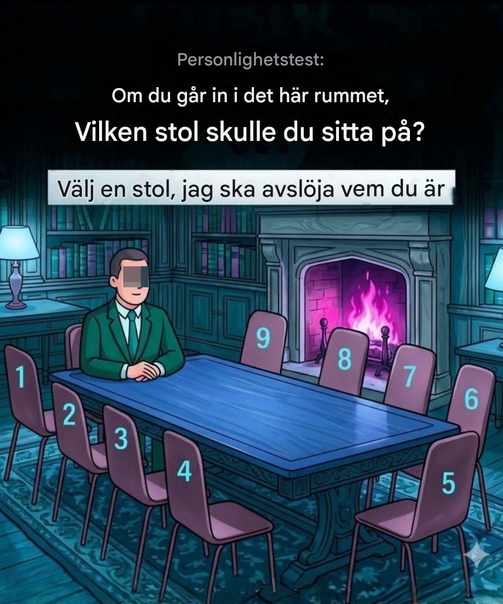 I det här enkla testet går du in i ett rum med ett långt bord, en tänd öppen spis och nio stolar. En person sitter redan. Frågan är: vilken stol skulle du välja?