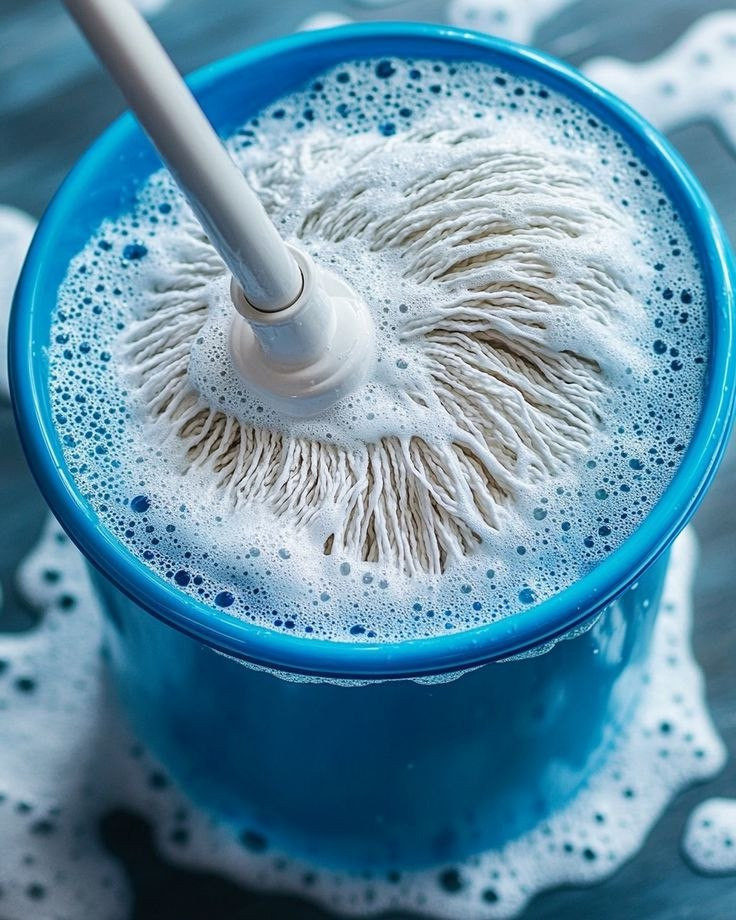 Efter denna tid, skölj moppen noggrant under rinnande vatten för att ta bort eventuell kvarvarande vinäger och smuts.